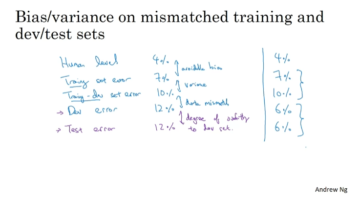- Carry out manual error analysis to try to understand difference between training and dev/test sets