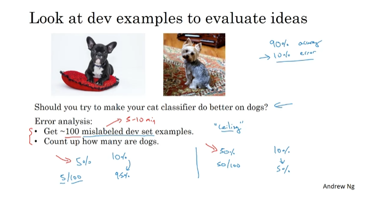 dev/test set에서의 잘못 라벨링된 예시가 걱정되면 error analysis에 추가 열을 넣어 개수를 세는 것을 추천한다.