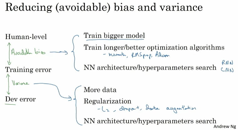 - Use Bias/Variance analysis & Error Analysis to prioritize next steps.