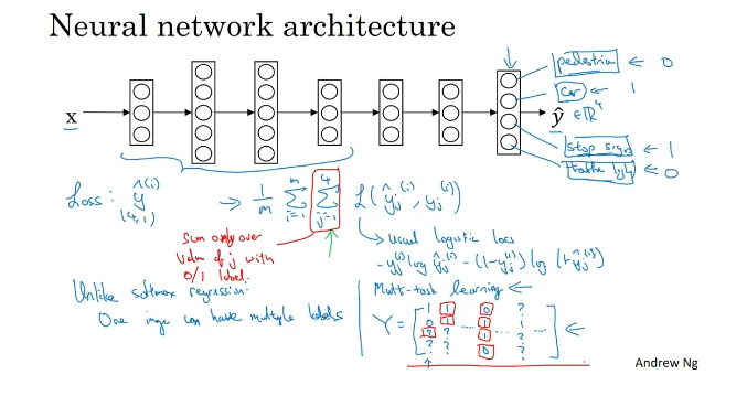 개별 네트워크로 만들 수도 있지만, 신경망의 초반 특성 일부가 다양한 물체들 간에 공유될 수 있는 경우 한 개의 신경망을 훈련시켜 네 개의 일을 할 수 있도록 하는 편이 더 성능이 좋다.