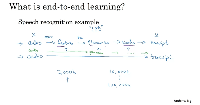 종단간 딥러닝은 잘 작동하기 위해 많은 양의 데이터가 필요하다.