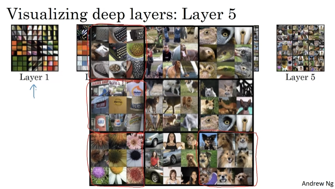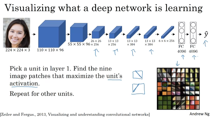 one hidden unit. 선에서부터 복잡한 것까지 구분하게 됨. 9개의 이미지 패치 각각에 대해 뉴런 활성화. 레이어1의 히든 유닛을 훈련시키는 감각을 준다.