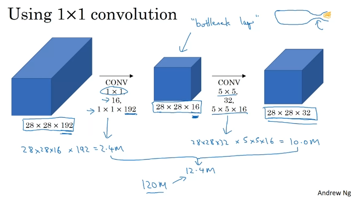 채널(3번째 곱하는 수)을 축소 (32) 하는 것에 유용하다. 물론 채널 수를 유지(192)할 수도 있다.