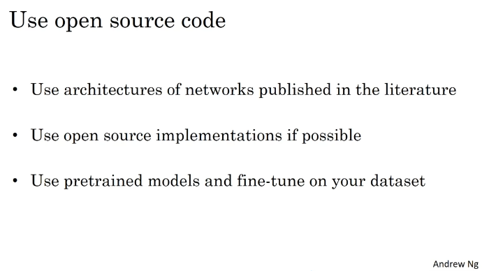 다른 사람의 오픈소스 활용. 전이 학습 항상 실시하기. 인터넷의 다른 학습 세트 활용.
