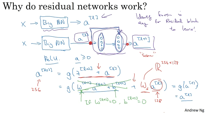 잔류 네트워크가 동작하는 이유는 추가 층이 항등 함수를 쉽게 학습해서 성능을 저하시키지 않고 퍼포먼스를 돕는다.