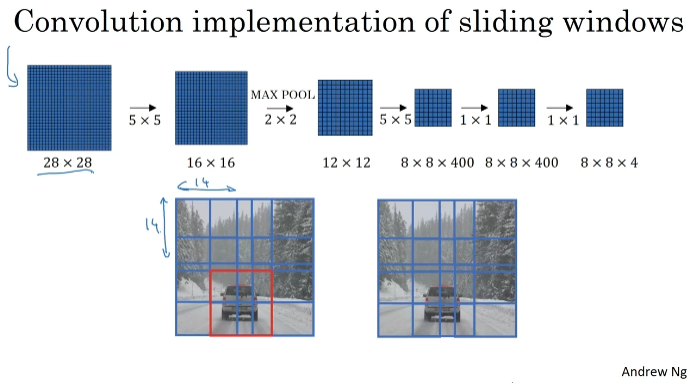 convnet 학습한 이후 이후 sliding window 감지에서 사용할 수 있다.
