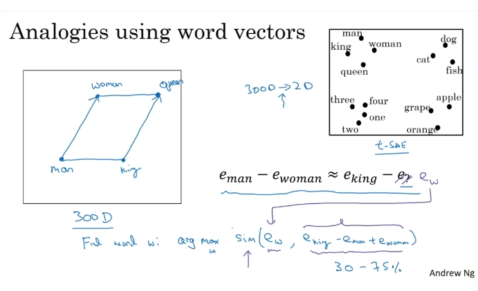 유추 문제에도 도움을 준다. 남자와 여자는 같은가? 뺄셈. man-woman이 king-queen과 비슷한 결과.