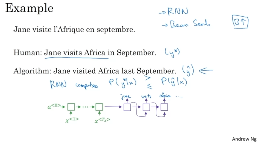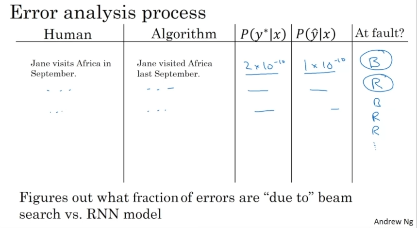 오류 분석하기. RNN과 Beam Search 알고리즘 중에 무엇이 문제일까. RNN은 인코더와 디코더를 의미한다.
