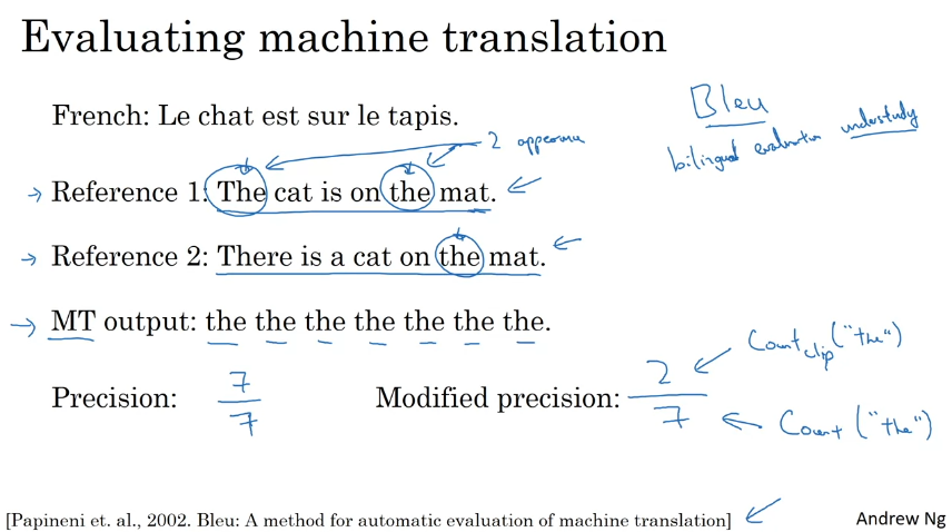 단어 각각에 대해 최대 횟수만큼 크레딧을 부여한다. 수정된 정밀성 (2/7)