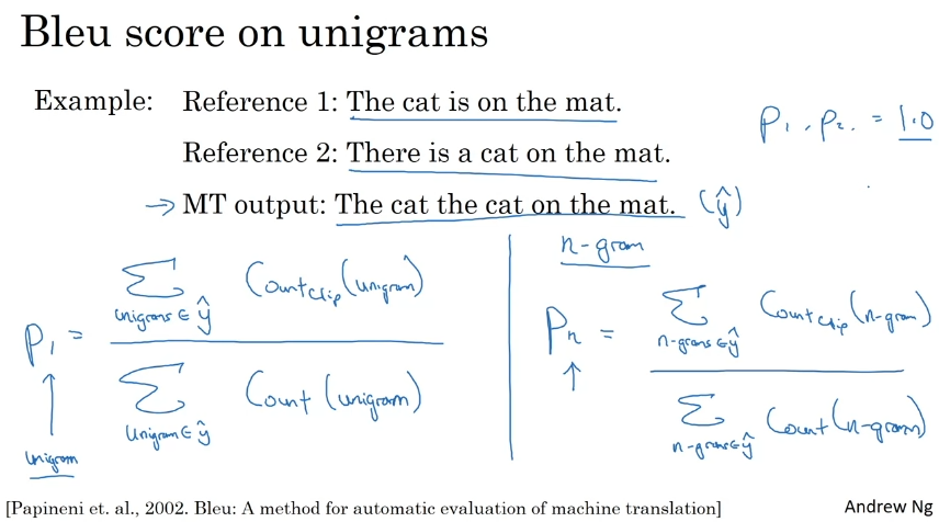 3) unigram=P1. n-gram = Pn. 비슷하거나 reference와 겹치는 정도를 추측할 수 있다. reference와 완전히 동일하면 1.0이다.
