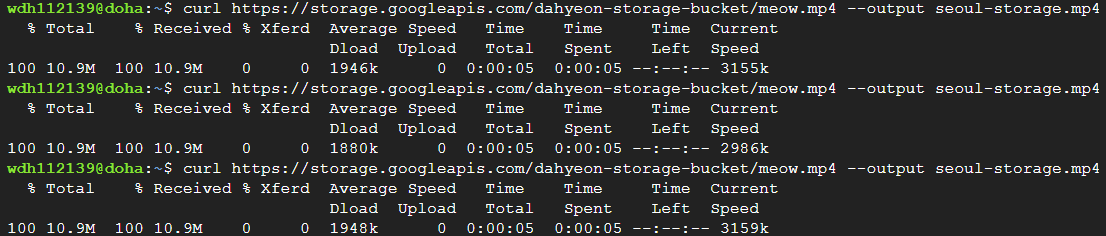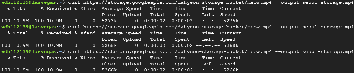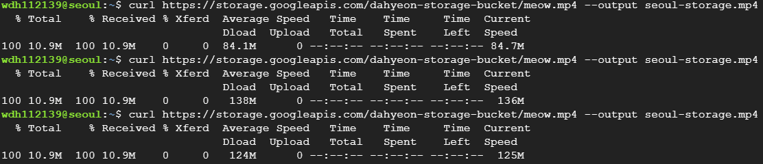 $ curl https://storage.googleapis.com/dahyeon-storage-bucket/meow.mp4 --output seoul-storage.mp4