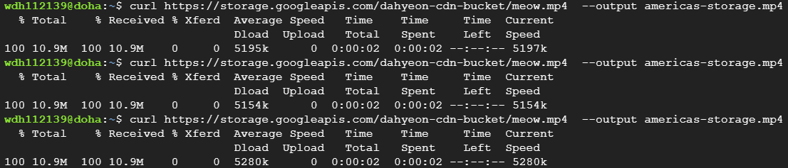 $ curl https://storage.googleapis.com/dahyeon-cdn-bucket/meow.mp4 --output americas-storage.mp4