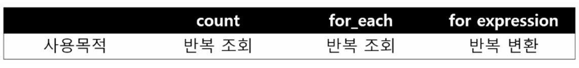 for each: 반복문, 선언된 key 값 개수만큼 리소스를 생성