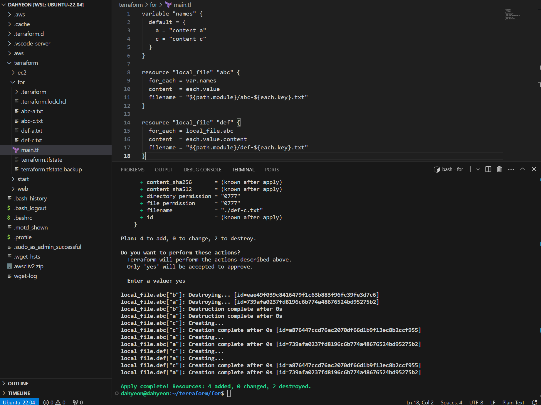 - local_file.def의 경우 local_file.abc 도한 결과가 map으로 반환되므로 다시 for_each 구문을 사용할 수 있다