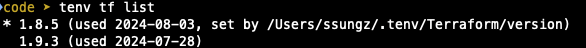 $ tenv tf list