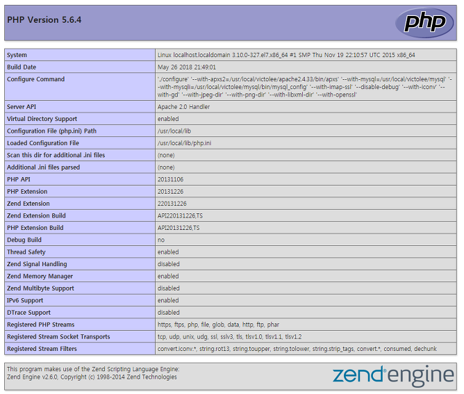 Apache와 MySQL이 설치되어 있는 CentOS 7 환경에서 PHP 5.6.4과 PHP 7.0.30 버전을 각각 설치함으로써 LAMP 스택을 구성하려고 합니다. 아파치 2.4.33 설치 ( 링크 ) MySQL 5.6.15 설치 ( 링크 ) 이 글에서..
