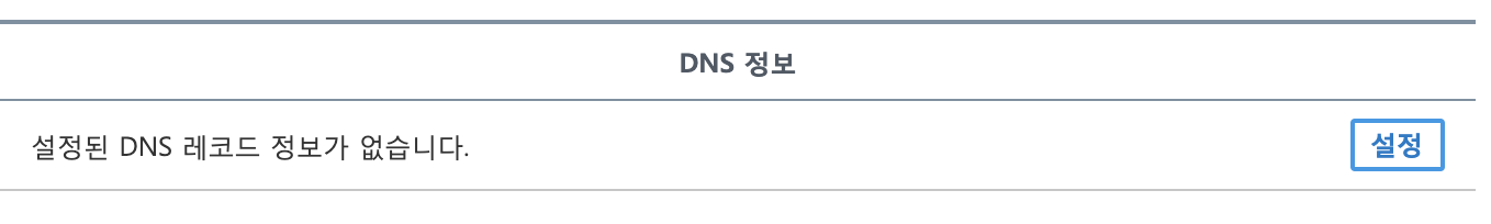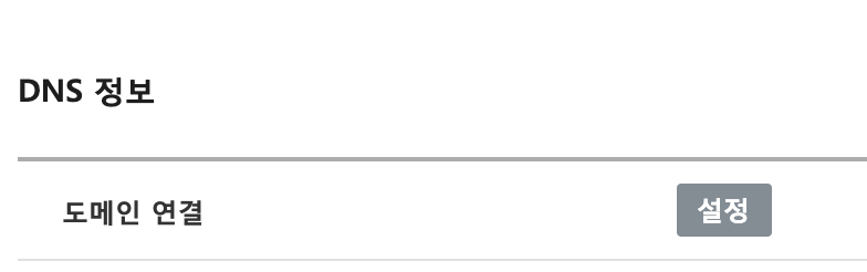DNS 정보 선택란에서 도메인 연결 '설정'버튼 -> '설정' 버튼을 클릭한다.