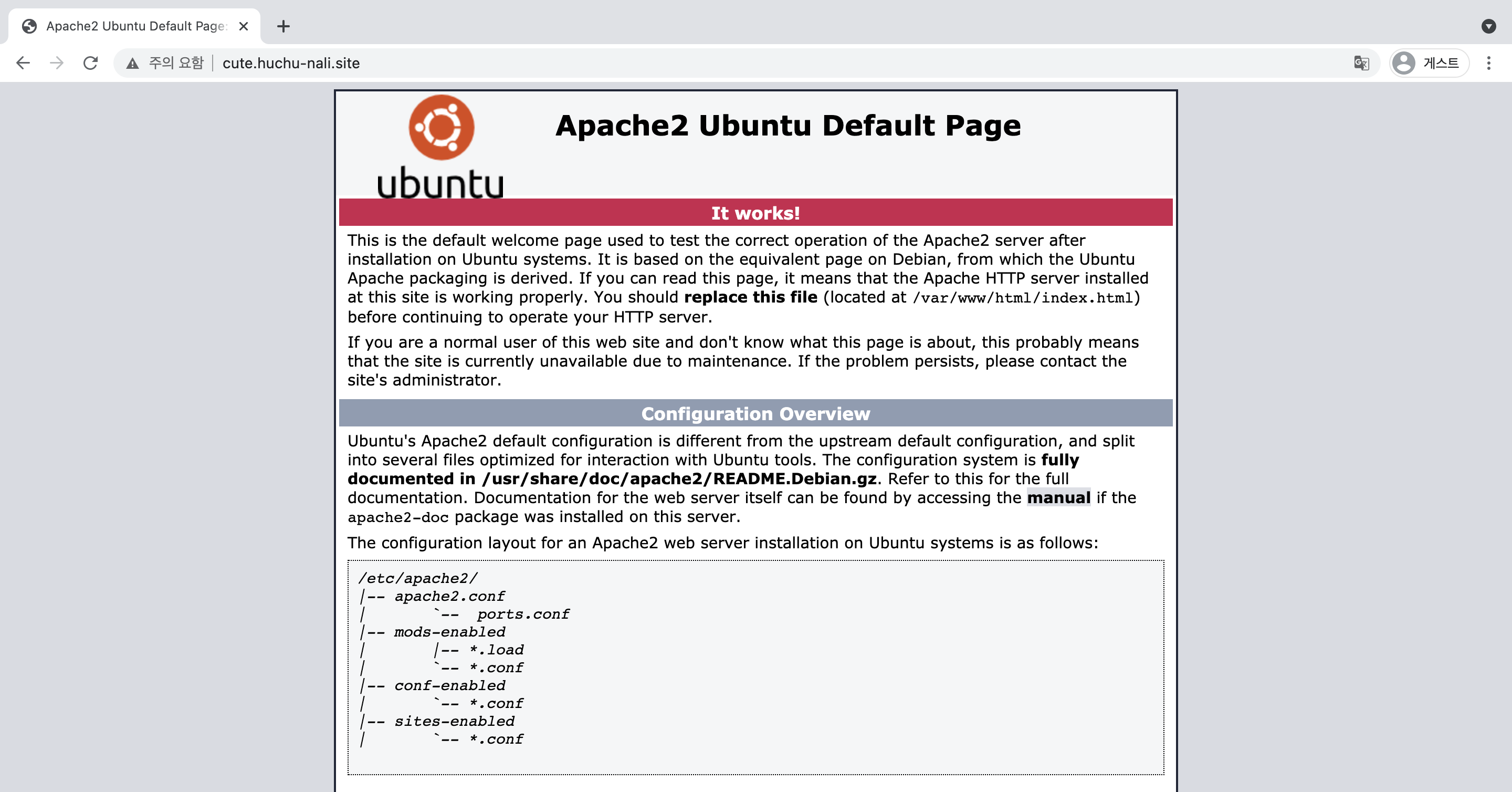 (cute.huchu-nali.site 도메인으로 들어오는 경우 /var/www/html/cute로 가도록 설정했다.)