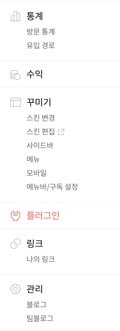 (1) 티스토리 설정 화면으로 이동 -> 플러그인 탭 클릭